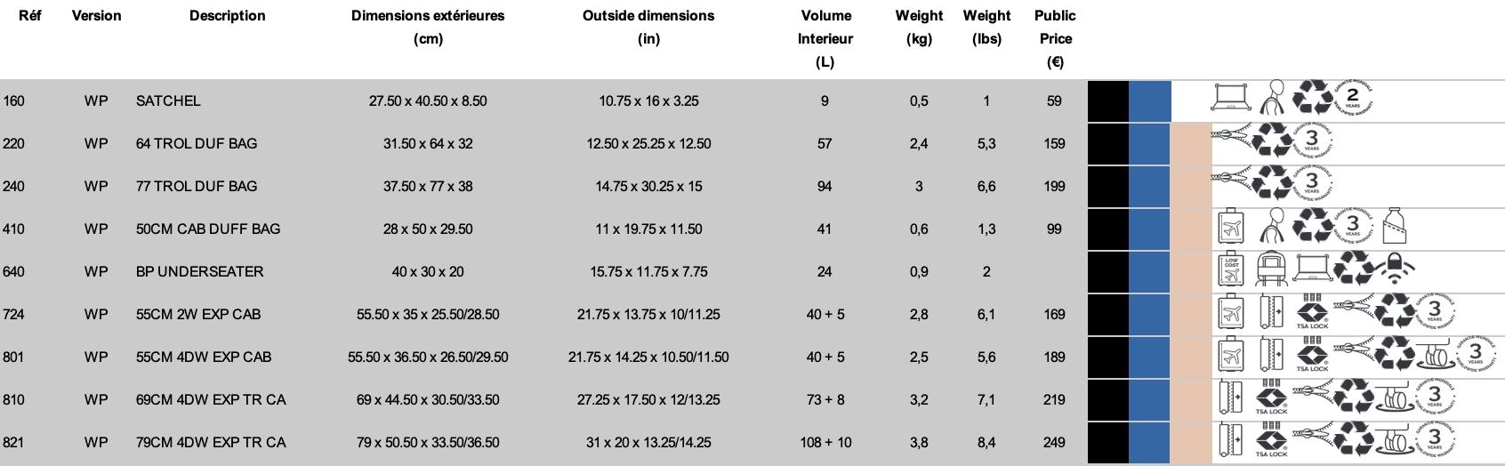 Les bagages de cette collection sont spacieux et pratiques : du format cabine au format trunk en passant par les sacs à dos. Sécurisée, cette ligne de bagages est dotée du système de verrouillage breveté SECURITECH®..
