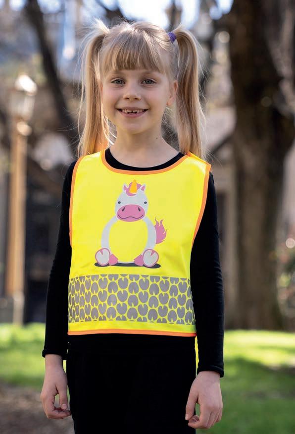 Increased visibility thanks to fluorescent and retroreflective material in daylight, twilight and darkness.