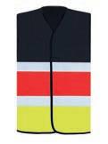 • Hi-Vis vest with four reflective strips: two 5 cm wide reflective strips around body, one 5 cm wide reflective stripe over each shoulder for high visibility