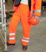 Waterproof and breathable Isotex 10 000 coated polyester fabric | Conforms to EN 343 Class 3:3 | Windproof fabric | Taped seams | Yellow Conforms to EN20471 Class 1 | Orange colour way Conforms to RIS 3279/TOM | Press studs at hem | Elasticated waist | The manufacturer guarantees the reflective properties in accordance with the EN standard for 5 washes