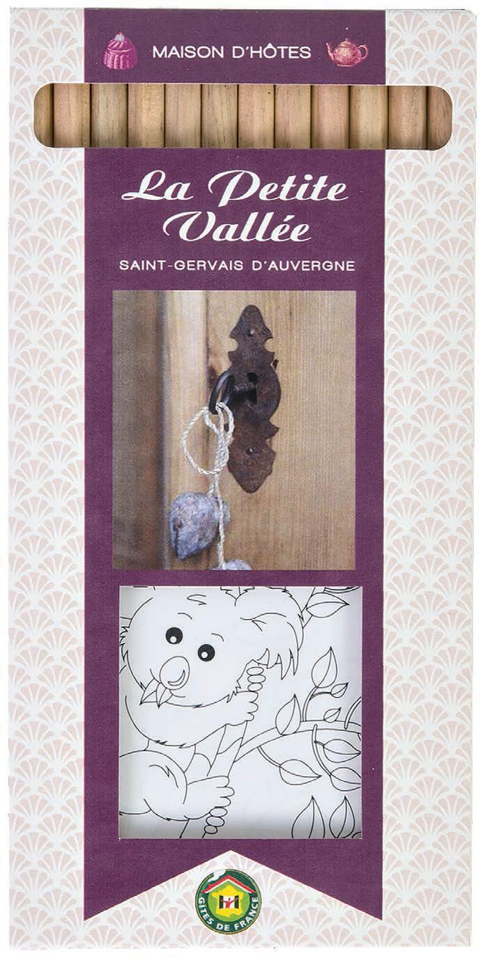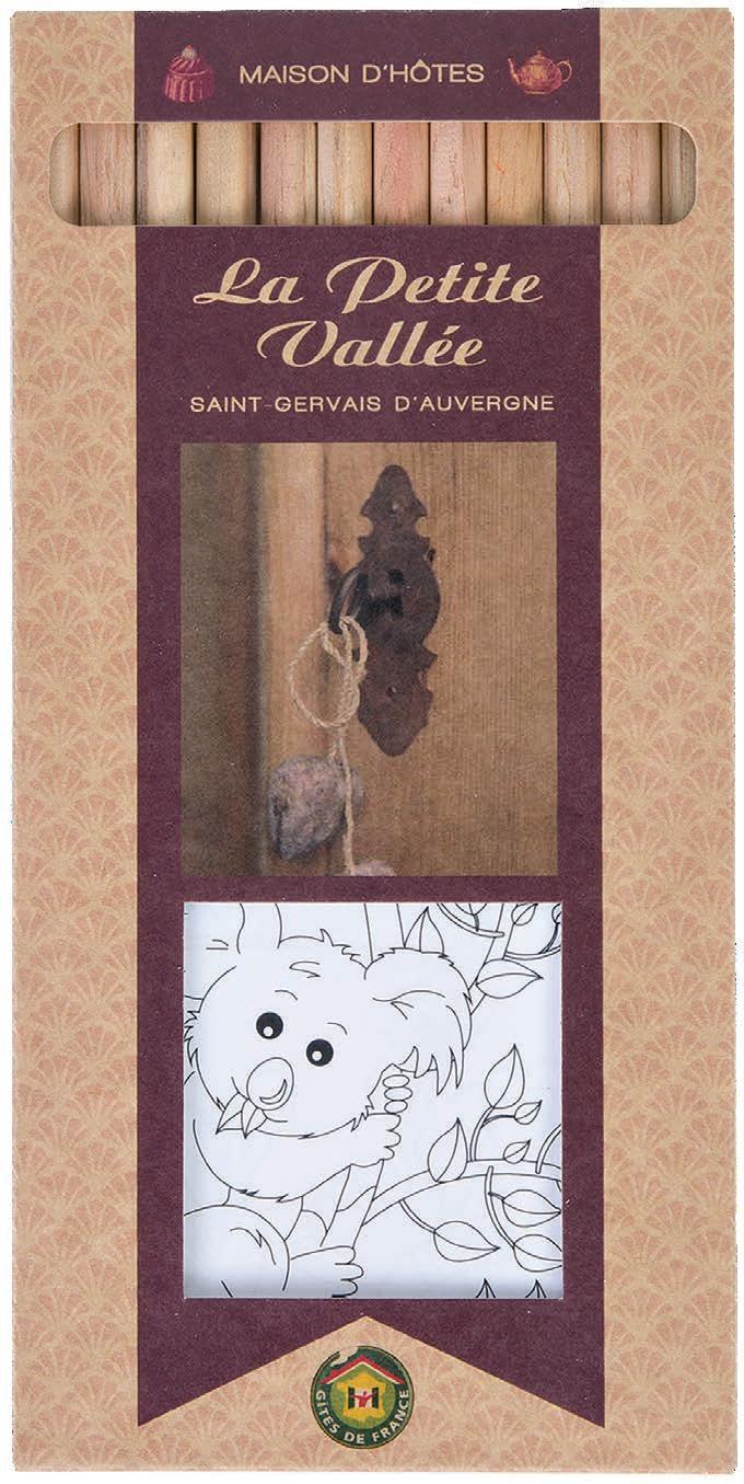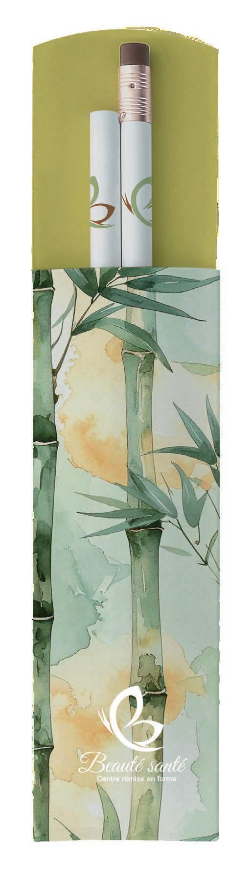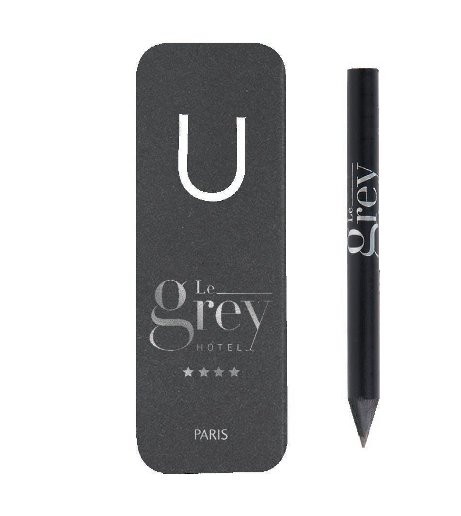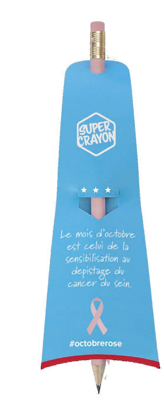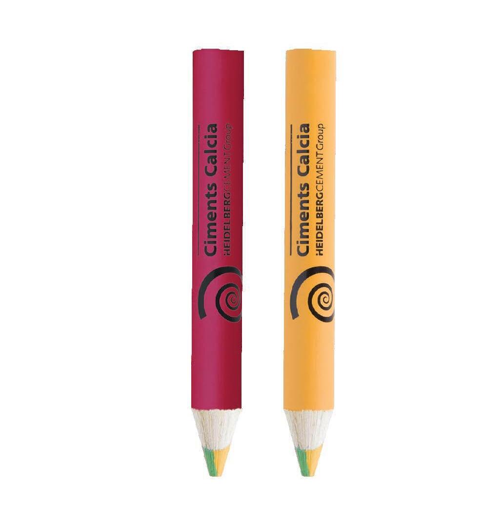 Crayon tenu par 2 fentes (demandez le gabarit. Positionnées au cas par cas en fonction de la forme et du visuel).
