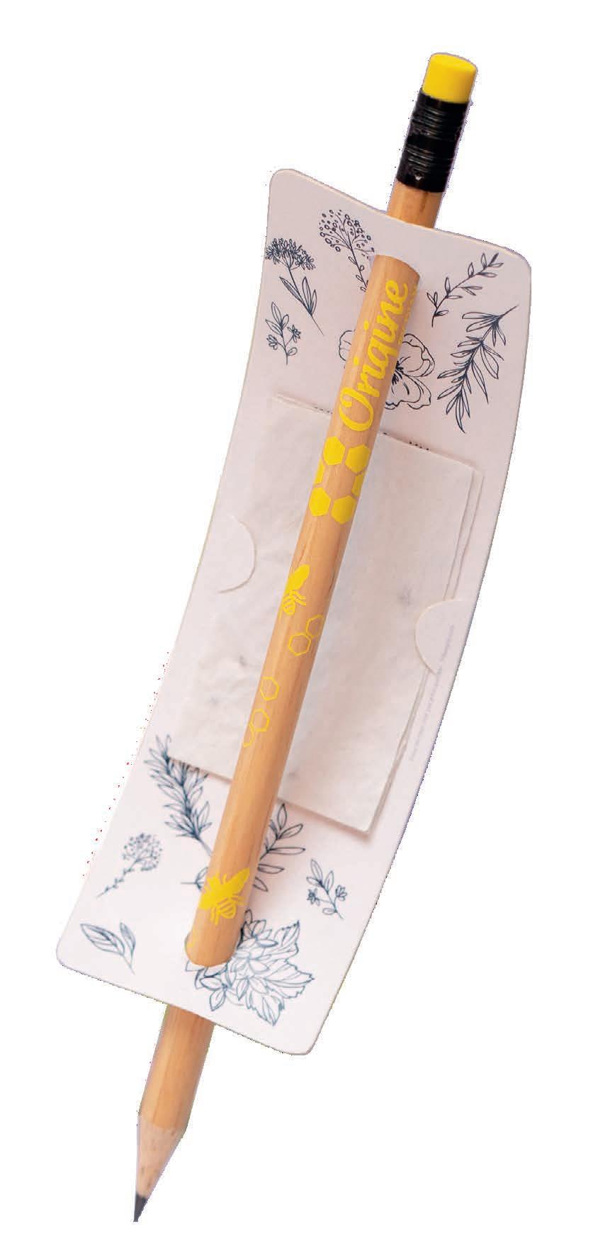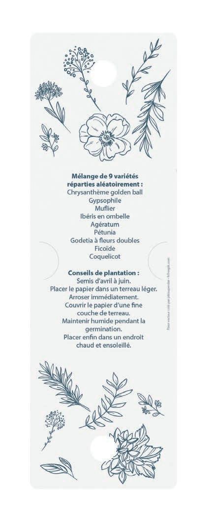 3 papiers graines intégrés 35 x 60 mm au dos du messager.