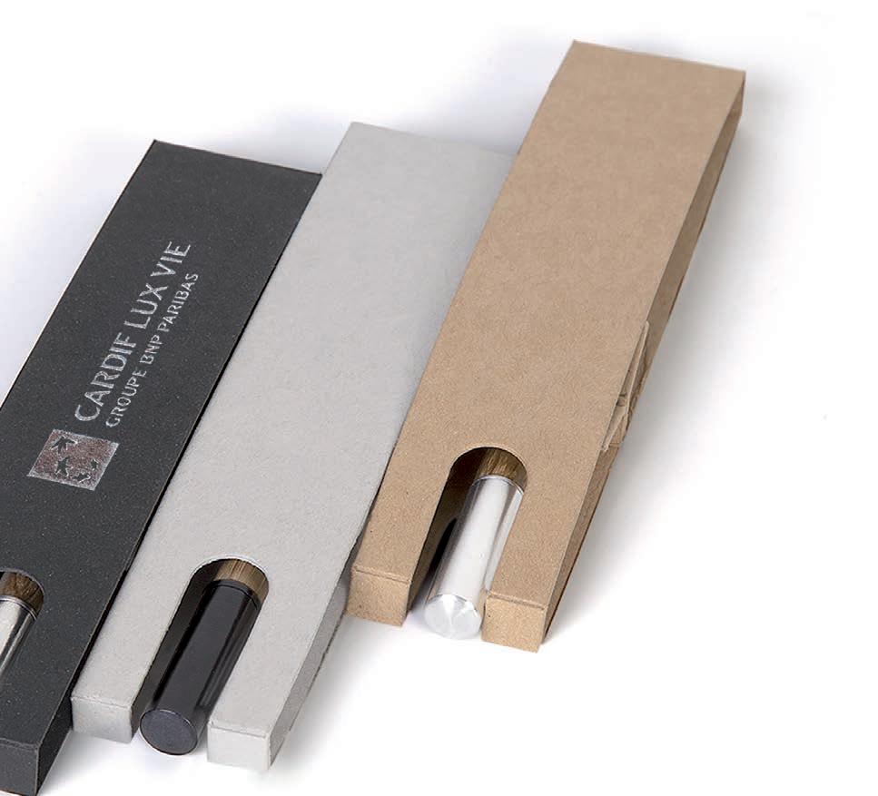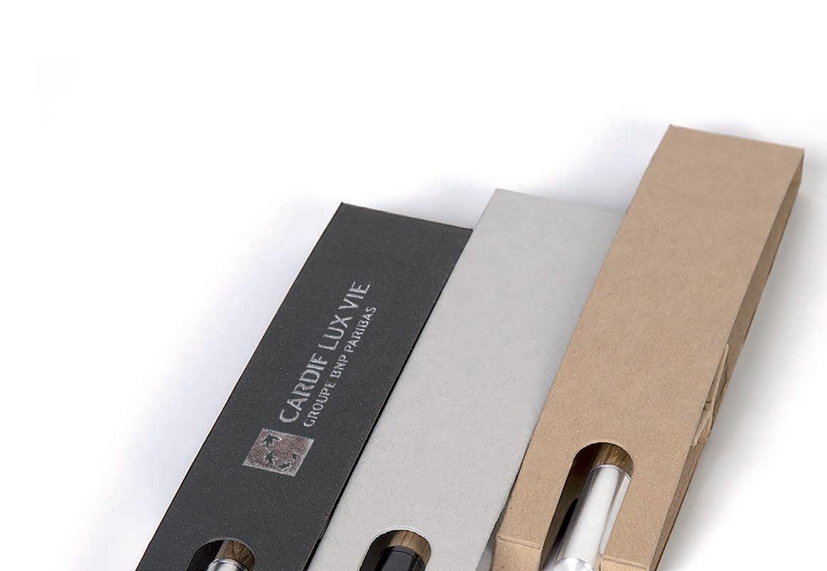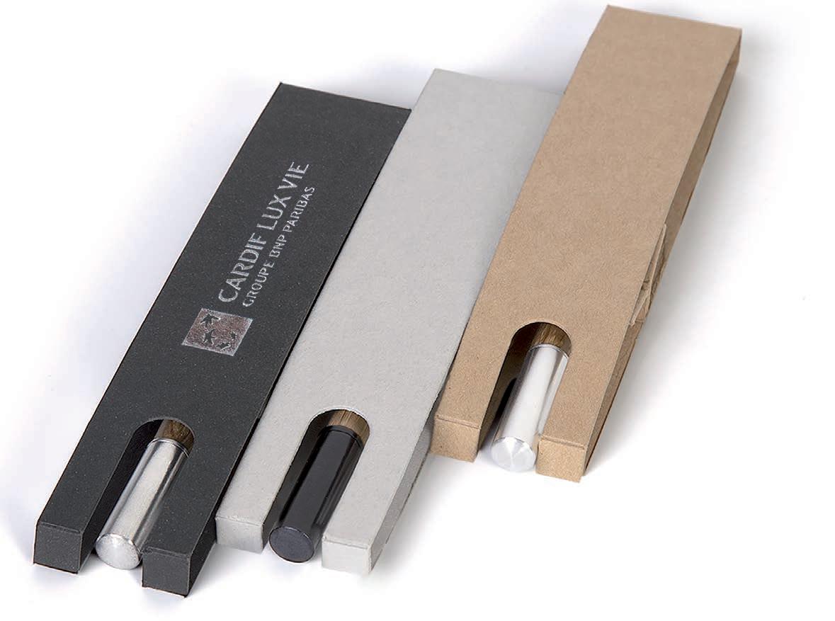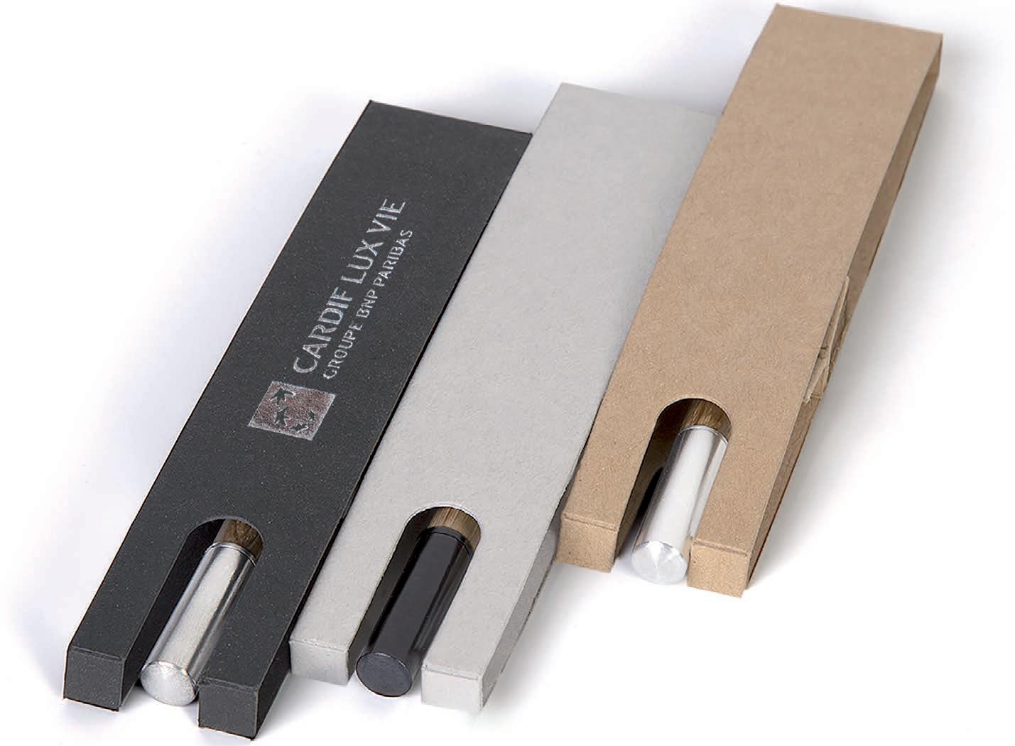 Il permet pleins de combinaisons : bois, forme, couleurs de vernis, finitions, marquage quadri totale et s’adapte à tous vos messages.
