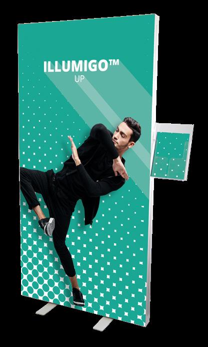 L'Illumigo™ Up est un totem lumineux pliable double face, équipé d'un sac de transport à roulettes. Chaque cadre peut être utilisé seul ou relié entre-eux à l’aide de connecteurs optionnels. La structure s’assemble en un clin d’oeil et peut s’accessoiriser d’un porte-documents (en option).
