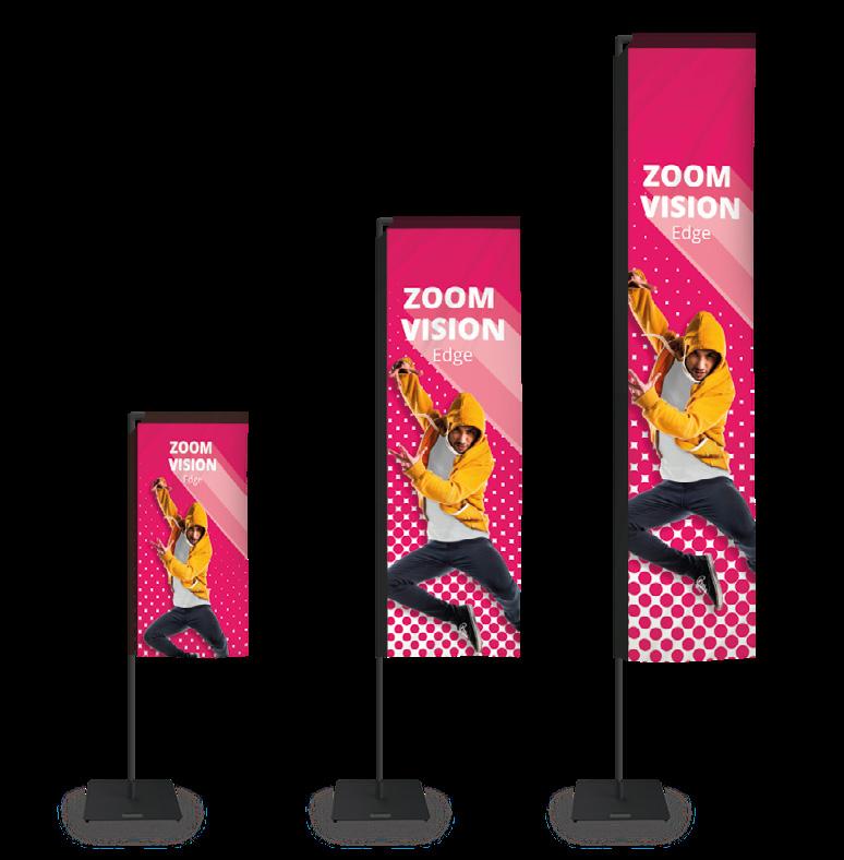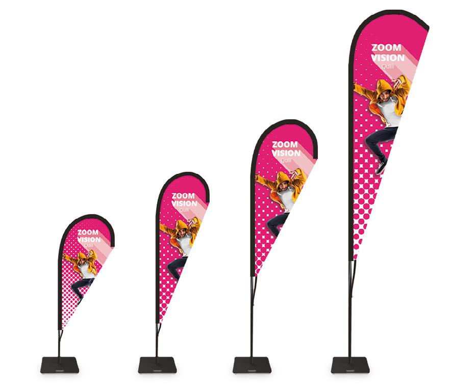 Les drapeaux publicitaires sont parfaits pour attirer le regard de loin.