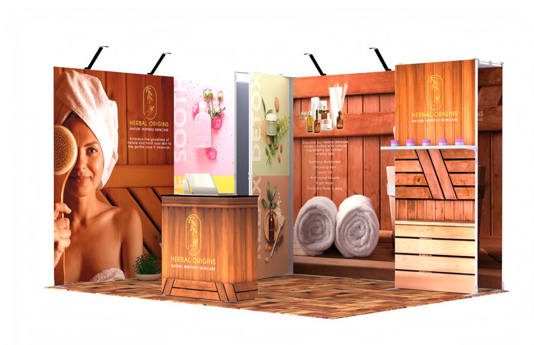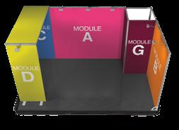 Des solutions d’exposition complètes comprenant des structures suspendues, des stands modulaires et des arches.
