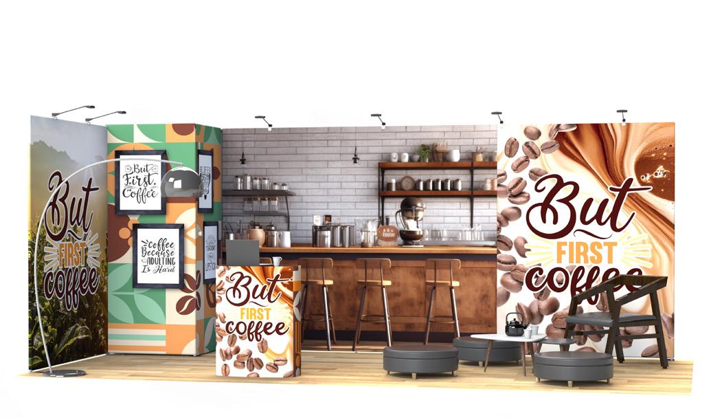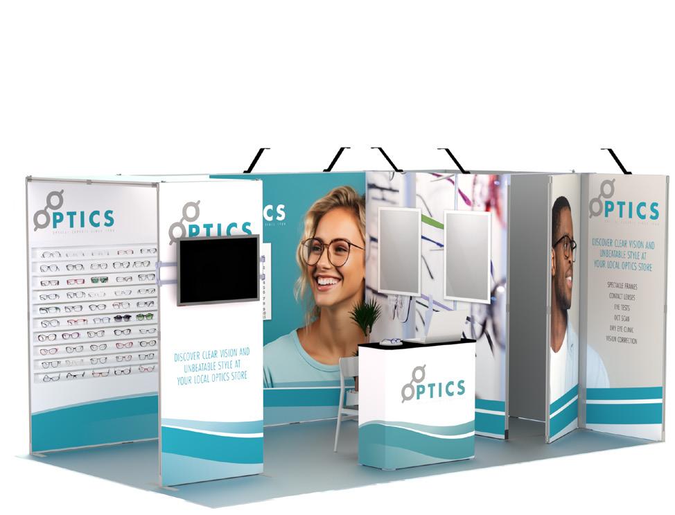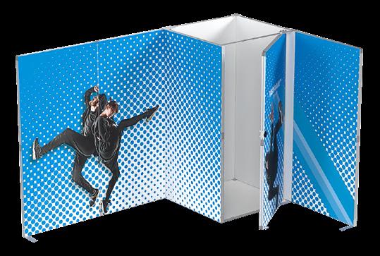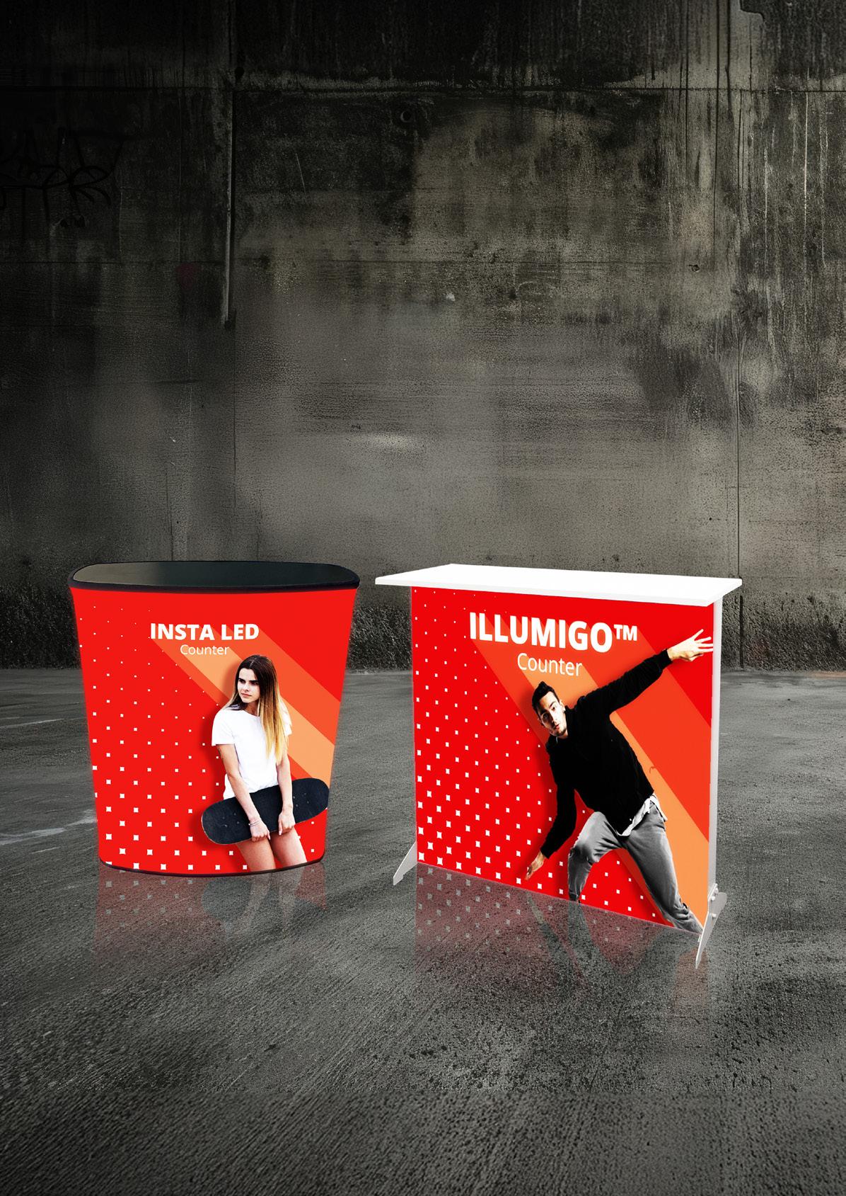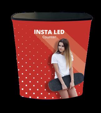 Attirez l’attention avec le comptoir Insta LED ! Ce comptoir lumineux doté d’un système dépliant avec levage automatique et de bandeaux LED pré-assemblés se monte en un clin d’oeil et sera parfait pour valoriser tous vos évènements intérieurs.