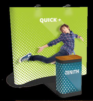 La valise Zenith en polyéthylène moulé résistant offre de multiples fonctionnalités. Solution de transport polyvalente et ultra-portable, procurant un maximum de stockage pour les stands parapluie, murs d’images, enrouleurs et extrusions. Elle peut également se convertir en comptoir en ajoutant une tablette et une jupe imprimée (en option).