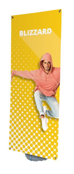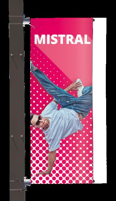 L’option de fixation par oeillets permet au visuel de suivre les mouvements du vent