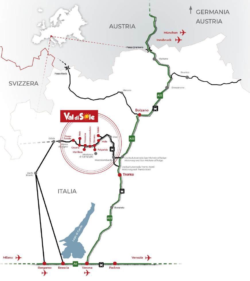The information and content of this catalogue, concerning the accommodation facilities, has been supplied by the facilities themselves This catalogue does not include all of the accommodation facilities in Val di Sole, due to the fact that it is based on the facility’s choice to place an insertion in this catalogue