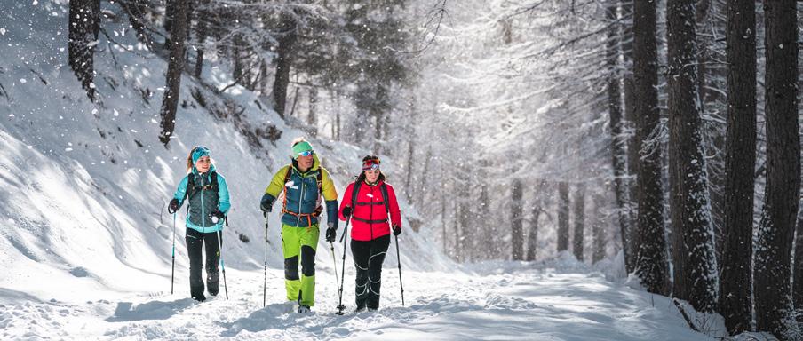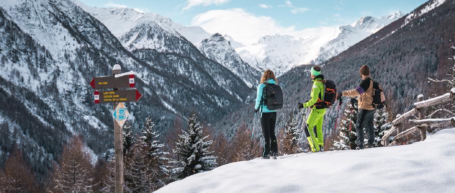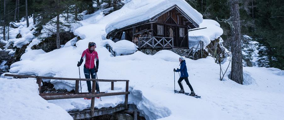 Beautiful snowshoeing among mountain pastures and snowy expanses, admiring in the background the Cimon de Bolentina and a panoramic view of the Val di Sole. Along the route, which runs along trails and forest roads, it is not unusual to spot wild animals.