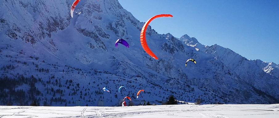 An exciting, adrenaline and accessible winter sport: have you ever tried the snowkite at Passo Tonale? It is the snow version of the Kitesurfing: driven by the wind, you will slide on white slopes with a snowboard or ski, controlling the kite by means of a bar, whizzing through the white mountains of Tonale.