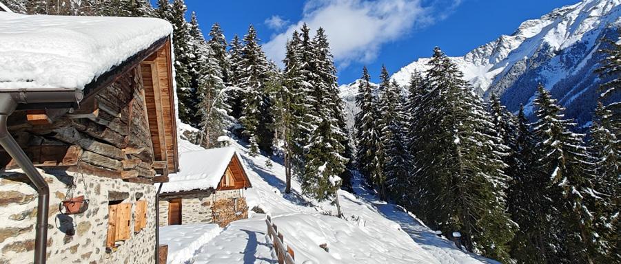 Trail in the middle of the forest among characteristic “masi” from the rural past. Before admiring the frozen Valorz Waterfalls, along the path you will find installations depicting forest animals, created with natural materials by artist Maurizio Misseroni.