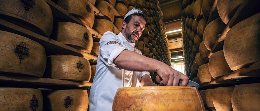 Immerse yourself in the mountain farming world through an history-educational trail. Reach the vault where the Trentingrana cheeses are neatly arranged on ladders and let yourself be carried away by the aromas of this fascinating place. Attend the magical moment when a cheese wheel is opened and taste it paired with Trento DOC bubbles.