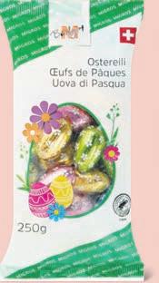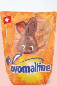 Ovetti di Pasqua al latte M-Budget 250 g, (100 g = 1.58) 4.65 Coniglietto Ovomaltine 70 g, (100 g = 6.64) 11.50 invece di 14.38 Ovetti Ovomaltine in conf. speciale, 300 g, (100 g = 3.83) 20%