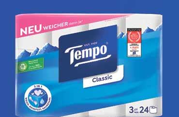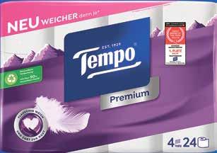 20% Carta igienica o salviettine umide, Tempo in confezioni multiple o speciali, per es. Premium, FSC®, 24 rotoli, 15.90 invece di 26.50 40%