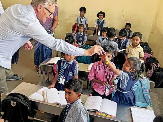 A mezz’ora d’auto dalla fabbrica tessile troviamo un muro di pietra blu con la scritta «MIGROS K.I.D.S SCHOOL». Alunni e insegnanti si sono radunati in cortile, pronti per la visita dalla Svizzera. Bambine e bambini indossano uniformi scolastiche colorate con la scritta «MIGROS KIDS» sulla schiena. Sono 1185, di età compresa tra i 6 e i 16 anni. La scuola Migros, situata nel cuore dell’India, fu fondata nel 1988, quando nella regione non c’erano praticamente opportunità di istruzione e molti bambini lavoravano nelle fabbriche tessili. Migros elaborò un progetto scolastico di concerto con gli imprenditori locali. I genitori non ne furono tutti subito convinti: se i bambini avessero smesso di lavorare per andare a scuola, ciò avrebbe pesato sul bilancio familiare.