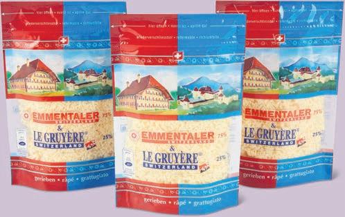 Emmentaler e Le Gruyère grattugiati, AOP 3 x 130 g, (100 g = 1.81)