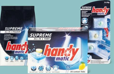 Tutto l'assortimento Handymatic Supreme (sale rigeneratore escluso), per es. Tabs All in 1 Lemon, 35 pezzi, 7.77 invece di 12.95