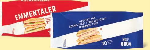 Formaggio fuso a fette Gruyère AOP o Emmentaler, in confezioni speciali, 30 fette, 600 g, (100 g = 1.16)