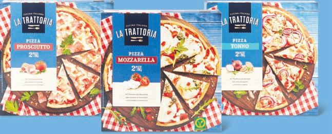 Pizze La Trattoria Mozzarella, Prosciutto o Tonno, per es. Mozzarella, 3 x 330 g, 4.20 invece di 5.30, (100 g = 0.42)