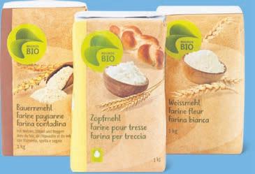 Tutti i tipi di farina Migros Bio da 1 kg (prodotti Alnatura, Demeter e Regina esclusi), per es. farina per treccia, 1 kg, 3.04 invece di 3.80, (100 g = 0.30)