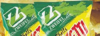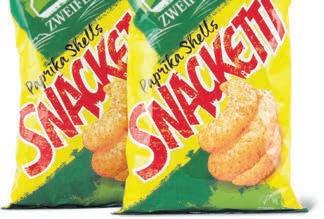 Snacketti o Filu Zweifel disponibili in diverse varietà, per es. Paprika Shells Snacketti, 2 x 75 g
