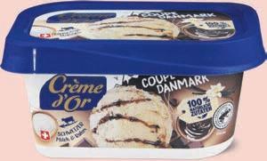 Crème d’Or è la nostra marca propria di gelati particolarmente cremosi prodotti con soli ingredienti naturali. La panna e il latte provengono dalla Svizzera.