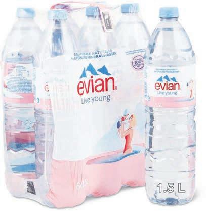 Evian in confezioni multiple, per es. 6 x 1,5 litri, 4.42 invece di 6.60, (100 ml = 0.05)