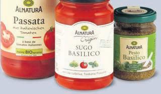 Passata, sughi e pesti, bio, Alnatura disponibili in diverse varietà, per es. sugo al basilico, 340 g, 1.80 invece di 2.25, (100 g = 0.53) 20%