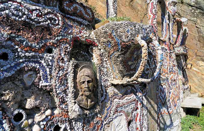 succhi di frutta, mentre questi pezzettini rossi sono i fanali di un’auto che era stata tamponata qui, in fondo alla via di casa mia» mi racconta Nicola mentre ci arrampichiamo lungo le scale strette. Il tragitto è segnato dalle date: 1981, 1990, 2001 eccetera. Sono le tappe del percorso di Nicola per arrivare in cima. «Quando ho iniziato non sapevo che cosa sarebbe uscito fuori. Ho semplicemente preso del cemento e ho attaccato dei sassi colorati sui muri. Andavo avanti così, senza disegni ma solo come mi diceva la fantasia. Dei cerchi, delle linee rette, dei cuori o delle spirali. Dovunque c’era uno spazio libero, per terra, sui muretti o sulle pareti di roccia, mettevo un po’ di cemento e ci incollavo qualcosa. Alla fine è venuto fuori tutto questo» dice con quella sua voce