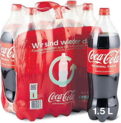 Tutti i tipi di Coca-Cola e Fanta in confezioni multiple, disponibili in diversi formati, per es. Coca-Cola, 6 x 1,5 l, 9.85 invece di 14.10, (100