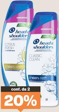Fiori e giardino 17 Offerte valide dal 28.5 al 3.6.2024, fino a esaurimento dello stock. 7.95 invece di 9.95 Phalaenopsis, 2 steli disponibile in diversi colori, in vaso, Ø 12 cm, il vaso 20% 13.95 Bouquet di rose M-Classic, Fairtrade disponibile in diversi colori, mazzo da 30, lunghezza dello stelo 40 cm, il mazzo Hit 6.35 invece di 8.80 Shampoo o balsamo, Pantene Pro-V per es. shampoo antiforfora, 2 x 300 ml, (100 ml = 1.06) conf. da 2 27% 9.95 Shampoo Pantene Pro-V Repair & Care, Lisci Effetto Seta o Corpo e Volume, in confezione speciale XXL, 1 litro Hit 26.95 invece di 39.90 Testine di ricambio Oral-B Precision Clean 8 pezzi, (1 pz. = 3.37) 32% Shampoo Head & Shoulders per es. Classic Clean, 2 x 300 ml, 8.45 invece di 10.60, (100 ml = 1.41) conf. da 2 20% Tutto l'assortimento Le Petit Marseillais (confezioni multiple e da viaggio escluse), per es. docciacrema ai fiori d'arancio, bio, 250 ml, 2.35 invece di 3.50, (100 ml = 0.94) a partire da 3 pezzi 33% 10.95 Shampoo Head & Shoulders Classic Clean, Citrus Fresh o Apple Fresh, in confezione speciale XXL, 800 ml, (100 ml = 1.37) Hit
