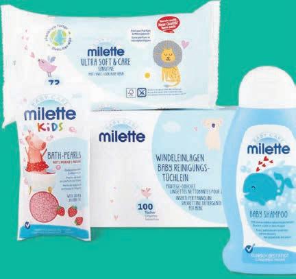 Tutto l'assortimento di prodotti per la cura del bebè e di detergenti, Milette (confezioni multiple escluse), per es. shampoo, 300 ml, 2.40 invece di 2.95, (100 ml = 0.80)