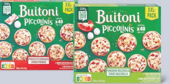 Mini pizze Piccolinis Buitoni prodotto surgelato, in confezione speciale, al prosciutto o alla mozzarella, 40 pezzi, 1,2 kg, (100 g = 1.38) 25%