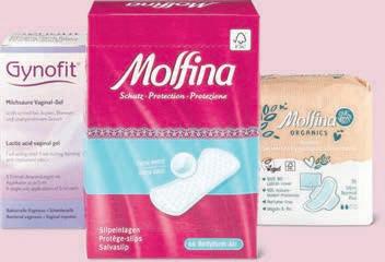 Tutto l'assortimento Molfina e Gynofit (confezioni multiple e sacchetti igienici esclusi), per es. Bodyform Air Molfina, FSC®, 46 pezzi, 1.50 invece di 1.85, (1 pz. = 0.03)