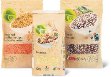 Quinoa, lenticchie, ceci e couscous, Migros Bio per es. Couscous, 500 g, 2.80 invece di 3.50, (100 g = 0.56) 20%