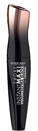 no essere utilizzati come eyeliner, come ombretto per tutta la palpebra o come base per altri ombretti. Il pratico temperino integrato nel pack consente di affilare la mina mantenendo un’applicazione extra precisa in ogni momento. I colori disponibili sono intense taupe, brown, military green e burnt sienna. Anche la gamma di Mascara 24Ore Instant Maxi Volume si amplia con tre nuove referenze di grande impatto, extra black, blu elettrico e marrone cioccolato. Con la formula arricchita con ceramidi, fibre volumizzanti e microsfere di silice lo sguardo intenso e