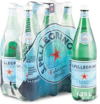 San Pellegrino e Sanbittèr in diverse varietà e confezioni multiple, per es. San Pellegrino con anidride carbonica, 6 x 1,25 litri, 4.42 invece di 6.60, (100 ml = 0.06)