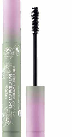 magnetico è garantito fin dalle prime passate. Lo speciale applicatore permette un’applicazione precisa, confortevole e uniforme. Infine, ecco il Mascara Volume & Care Bio della linea Deborah Milano Formula Pura, che rappresenta una vera rivoluzione nel make-up biologico e vegano. A base di ingredienti naturali di alta qualità, offre un triplice effetto sulle ciglia: volume, lunghezza e curvatura perfetta. La sua formula è arricchita con olio di ricino, olio di jojoba e burro di Cupuaçu. È adatto agli occhi sensibili e ai portatori di lenti a contatto. L’applicatore in fibra è adatto a tutti i tipi di ciglia.