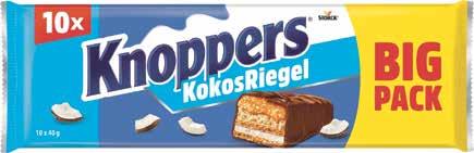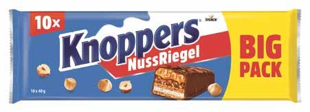Barrette alle nocciole, alle arachidi e al cocco Knoppers in conf. speciale, 10 x 40 g, (100 g = 1.40)