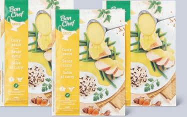 Salse Bon Chef al curry, alla cacciatora, alla panna o ai funghi, per es. salsa al curry, 3 x 19 g, (10 g = 0.58)