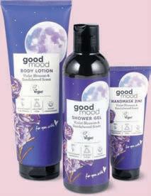 da 4 33% Good Mood Violet Blossom & Sandalwood prodotto vegano, per es. gel doccia, 250 ml, 4.20, (100 ml = 1.68)