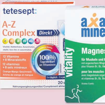 Tutti gli integratori alimentari (Sanactiv esclusi), per es. Axamine Magnesium Sticks, 24 pezzi, 10.46 invece di 13.95