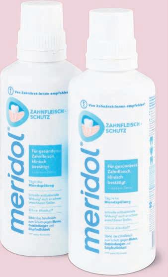 Dentifricio Meridol protezione gengive o protezione gengive + sbiancante delicato, per es. protezione gengive, 2 x 75 ml, 7.70 invece di 10.30, (100 ml = 5.13) conf. da 2 25% Spazzolini da denti Meridol delicati, medi o extra delicati, per es. delicati, 6.45 invece di 8.60, (1 pz. = 3.23)