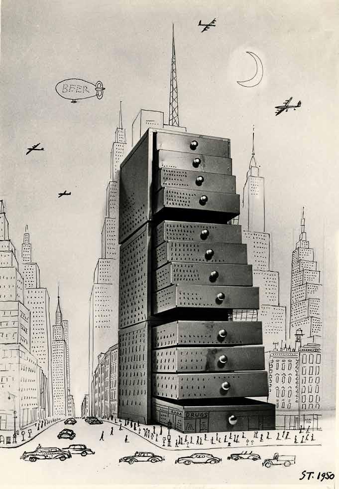In questo racconto anticonvenzionale delle trasformazioni architettoniche e urbane degli ultimi secoli attraverso caricature, cartoons, illustrazioni, fotomontaggi, film e altre forme d’espressione, si guarda così alla solennità della tecnica costruttiva con la levità dell’allegria e con il mordente del sarcasmo.