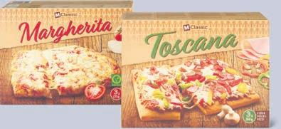 Pizze Toscana o Margherita, M-Classic prodotti surgelati, in conf. speciali, per es. Toscana, 3 pezzi, 1080 g, 8.85 invece di 11.85, (100 g = 0.82)