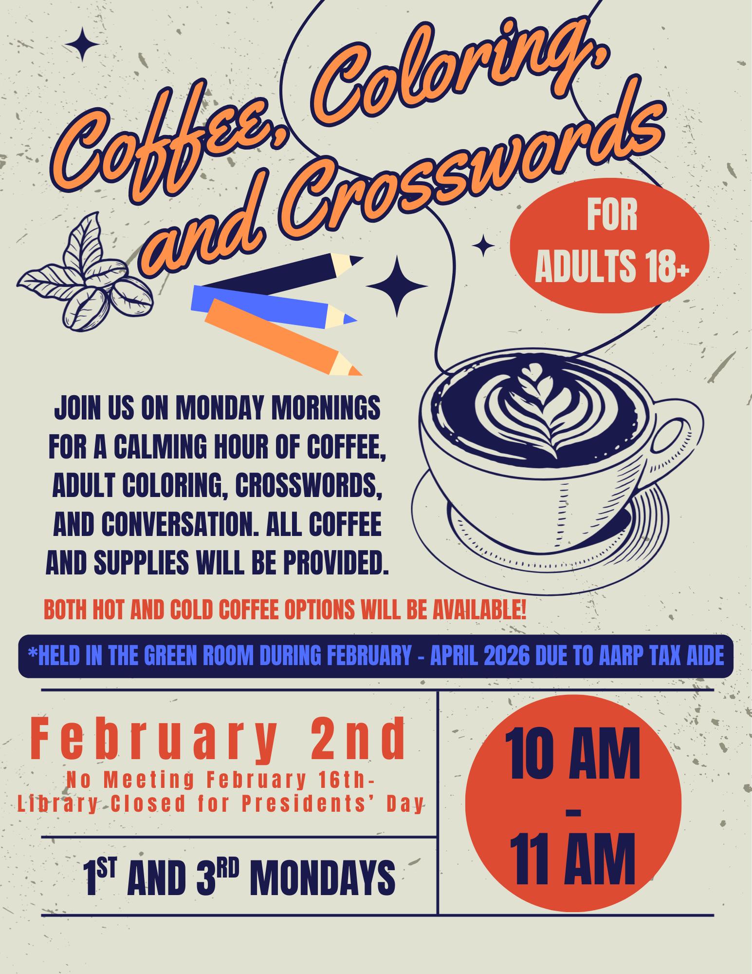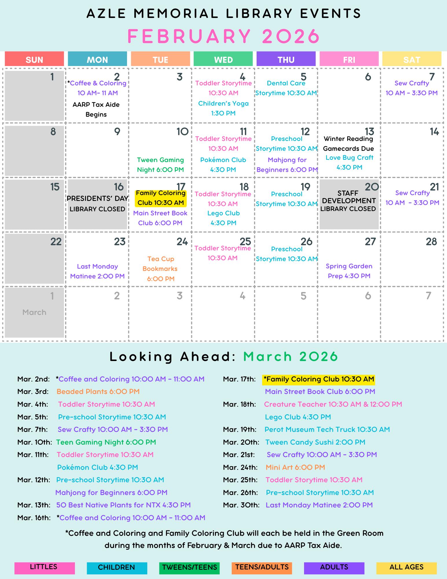 MONDAY 2/16: CLOSED FOR PRESIDENT’S DAY FRIDAY 2/20: CLOSED FOR STAFF DEVELOPMENT