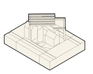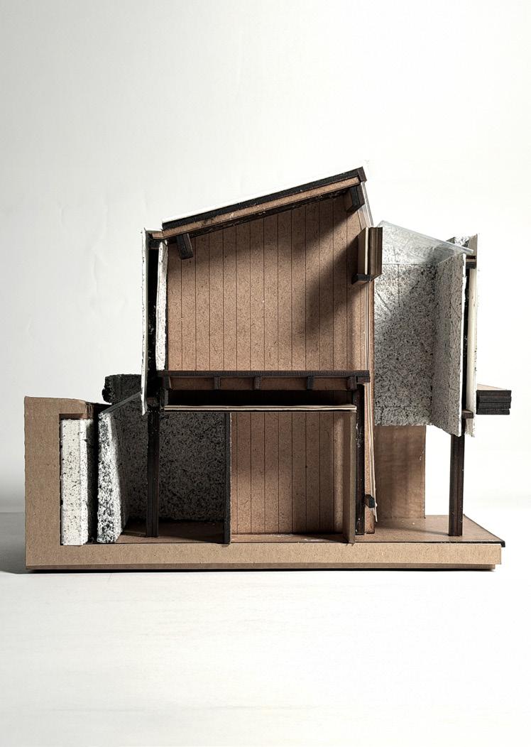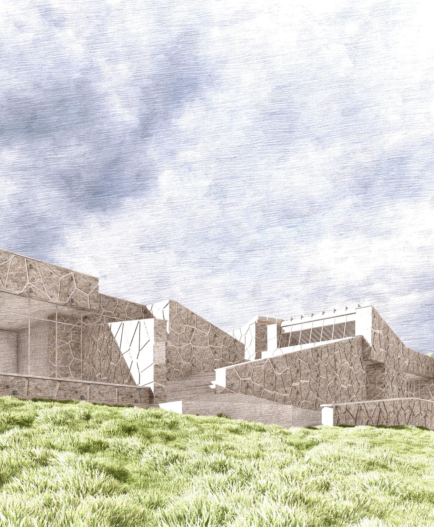 Light and site studies come together to form the interior spaces. Heavy stone walls pull back to allow for circulation space, and rigid perimeters give way to a nexus at its center in moves explored through physical modelmaking. This flowing sunken gathering area doubles as a lecture and social space, acting as a heart where pockets of light and material converge.