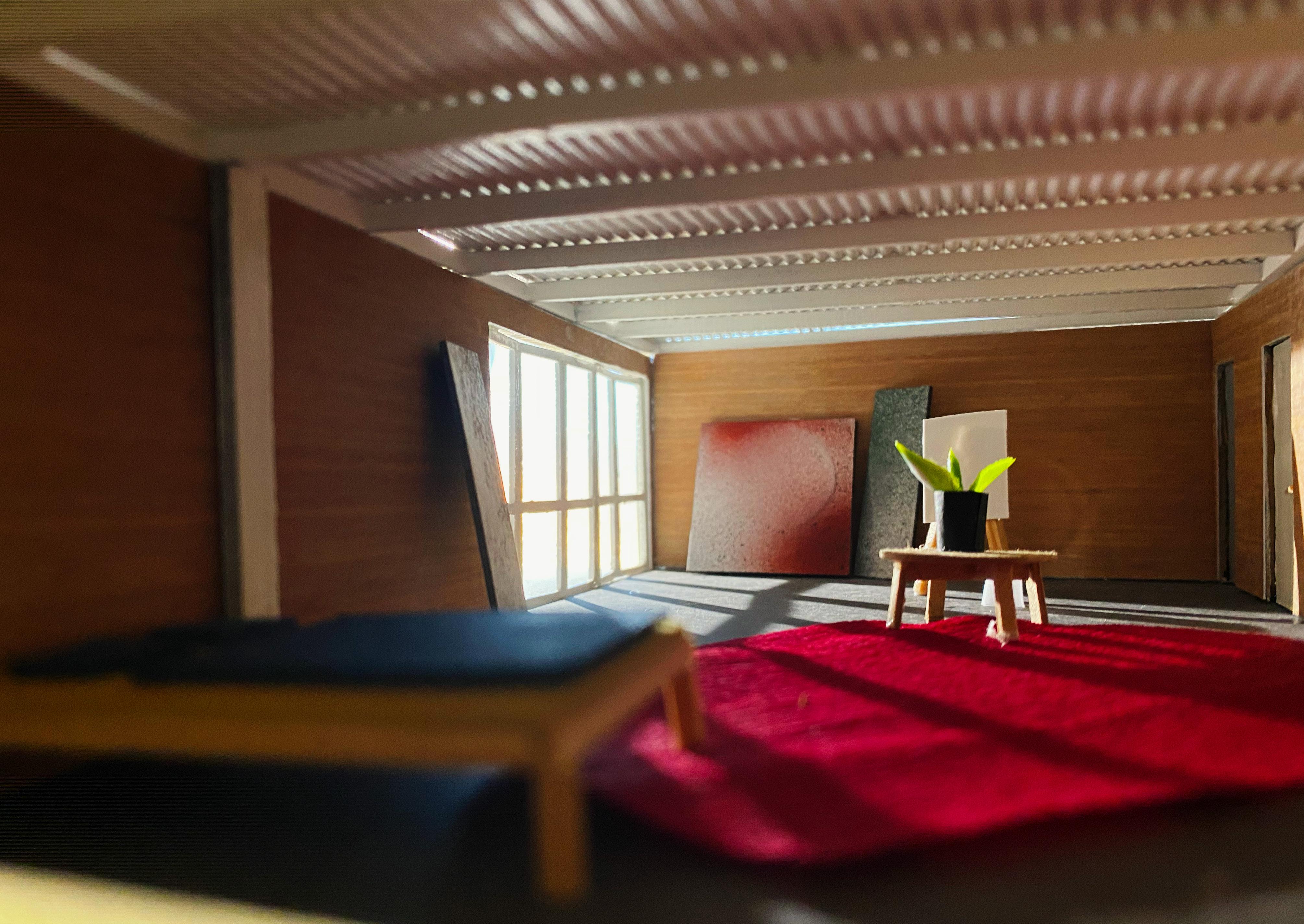 The capsules form has been developed as a consequence of a number of model studies, in which the feeling of oppressiveness and confinedness was to be created by redesigning a five meter long part of a corridor. The person inside the corridor is supposed to obtain an oppressive and frightening sensation due to spatial constraints and the many different ways in and out of the corridor. Following this, I considered how this narrowness could be thought of as a strength rather than a weak point.